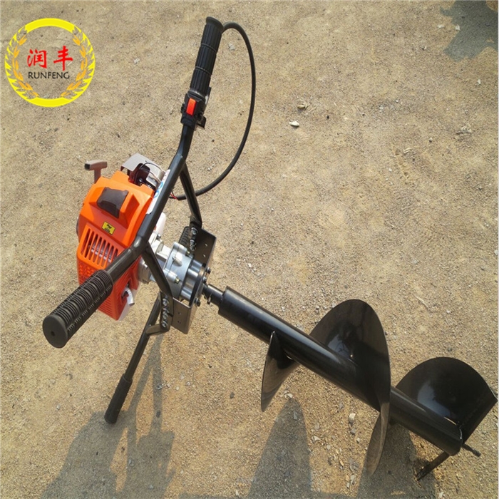 冰钻使用特点:1.该冰钻由小型通用汽油机,超越离合器,高减速传动箱及特殊设计的钻具组成.适合在土地,冻土,冰层上打孔.广泛用于园林,种植,植树,物探,道路建设等领域.?2.变速器齿轮采用纯紫铜制作大大提高了扭矩力增强了耐磨性。3.钻杆采用双刀片焊接加强了挖坑效果,出土率达到90%。配备定心钻头。?4.钻头采用锰钢合成更加的坚硬。对硬土质,粘土,冻土等都能对它很有效的实施工作,并能达到佳工作要求。钓鱼爱好者爱的钻眼钓鱼设备冰上钓鱼好帮手。?5.该地钻可根据树种,选配多种规格的钻头,以满足用户需要。使用地钻的效率是人工的数十倍,操作每小时不低于80个坑,按一天工作8小时计算,一天可以挖640个坑,是人工的30多倍。?6.具有体积小、重量轻、操作方便、维护简单、耗油省、噪音低、易启动、成孔效率高、运行费用低、价格便宜等特点,该地钻设计新颖、灵活、合理,性能稳定,作业效果好、效率高,深受广大用户欢迎。?7.地钻能够让人们从繁重的体力劳动解放出来,广泛应用于植树造林,栽种果林、篱笆、及秋季给果树施肥等。该地钻动力强劲有力,外形美观,操作舒适,劳动强度低,适合各种地形,效率高,便于携带及野外田地作业。?8.这款地钻既适合单人操作,又可双人操作,经济实用 公司方:山东省曲阜市润丰机械公司