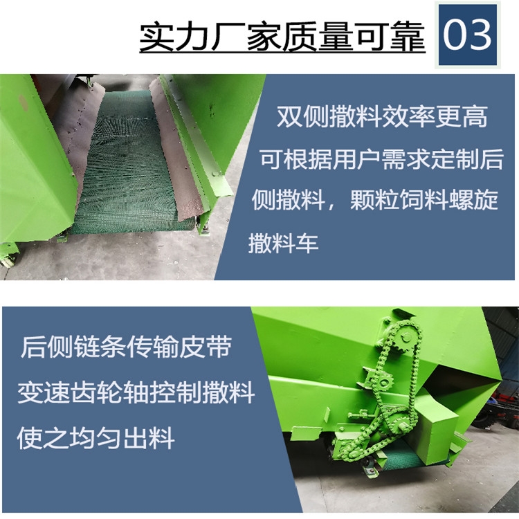 主要功能是将搅拌的饲料均匀抛撒,抛撒均匀不间断,达到一次投料完成的效果。操作流程较为简单,单人就可以完成投喂工作,是省时省力的帮手。与TMR机配套使用,主要适用于中小型养殖场,饲料加工厂等。