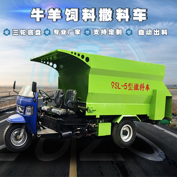 饲料撒料车的吊具采用三轮车动力和低能耗