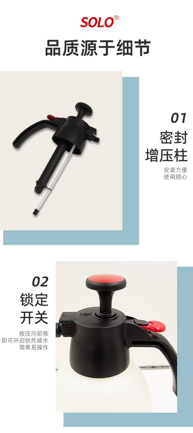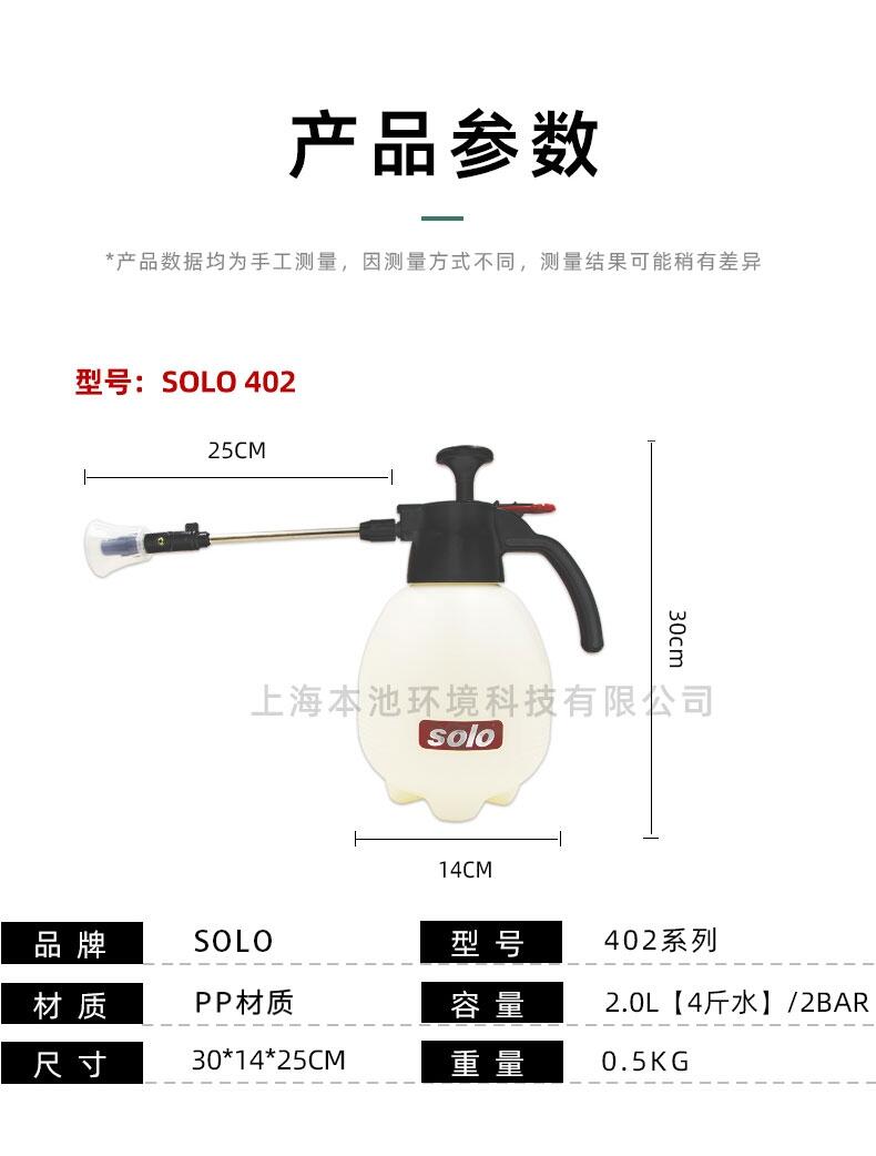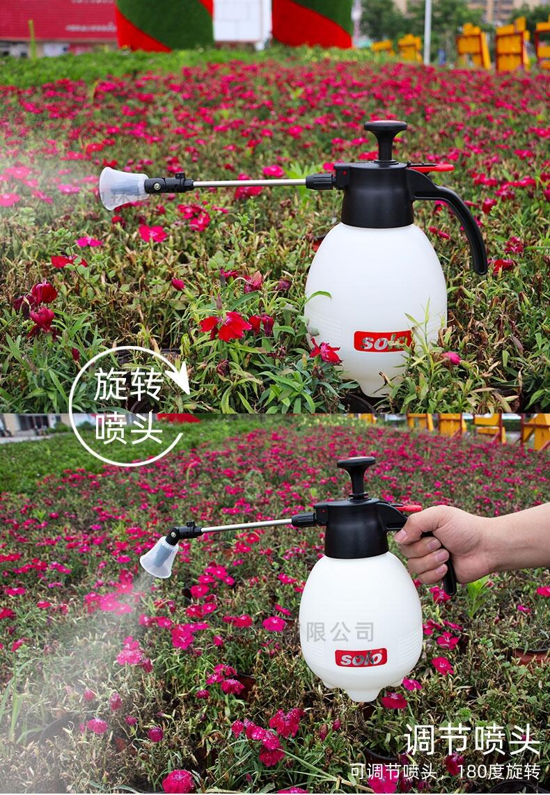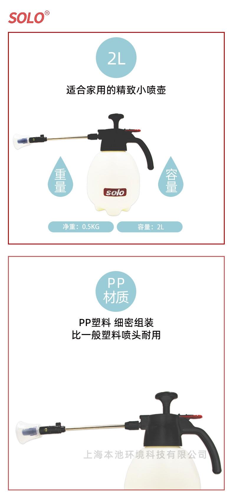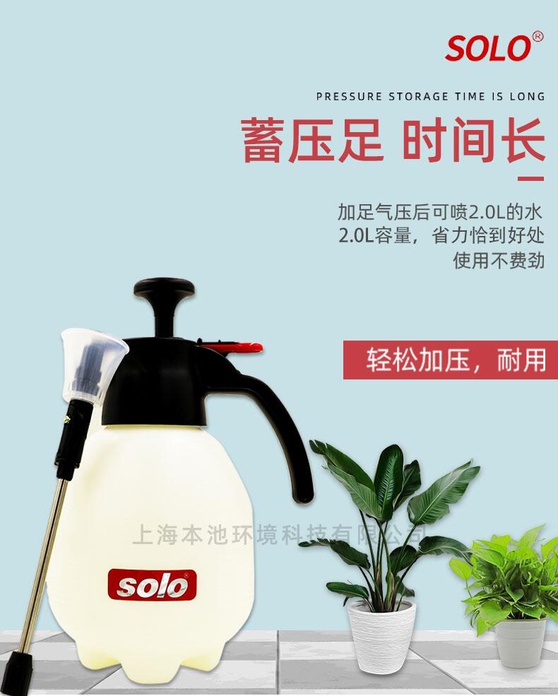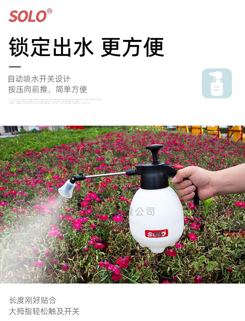 SOLO402家用清洁消毒小喷壶气压式浇花洒水喷雾壶,蓄压足,时间长,耐用,雾化细腻,一键免压自动出水,大容量2L,用途广泛,适合园艺浇花,家庭消毒防疫等。