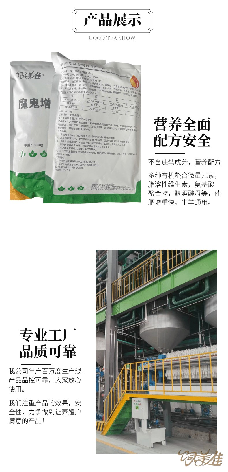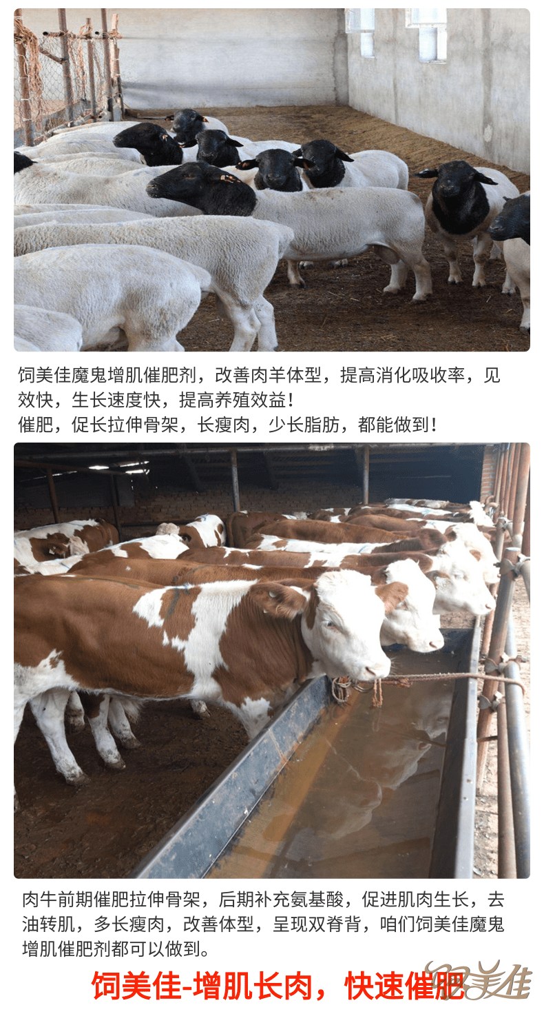 饲美佳魔鬼增肌催肥剂产品效果得到很多养殖户的认可好评,我们的产品绿色、安全,大家可以放心使用!羊促长剂催肥。