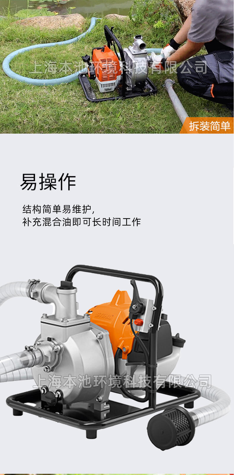 简介:斯蒂尔STIHL手提式水泵WP230,配备1.5寸水管,与市面在售水泵水管通用,流量高达250L/min,抽水速度快,带有便携式支架。