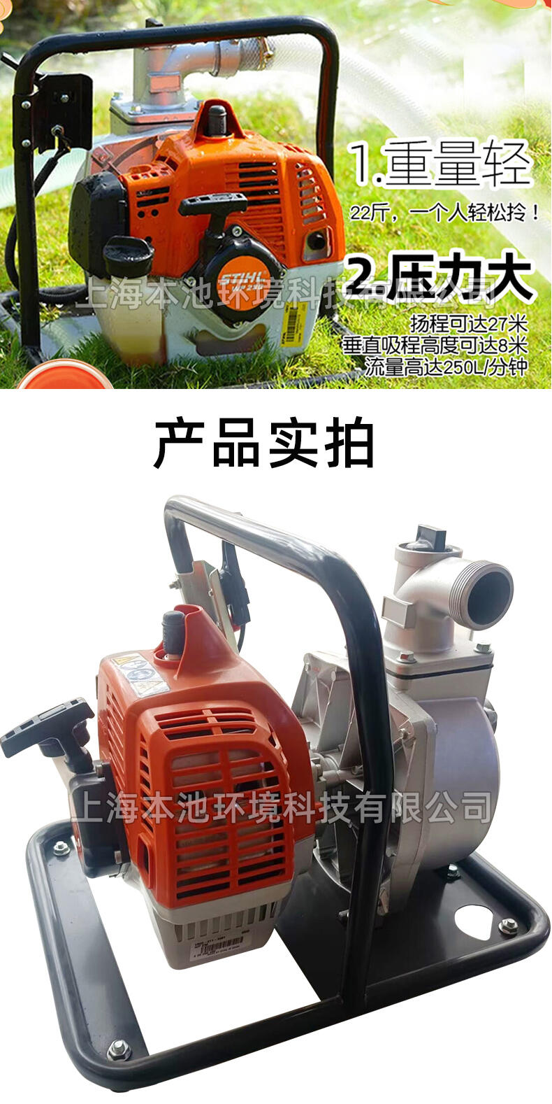 体积小、重量轻,有11.3公斤,一个人轻松拎着就能搞定,自吸式且垂直吸程高度可达8米,扬程可达27米。重量轻,轻松灌溉,拆装简单,轻松启动。
