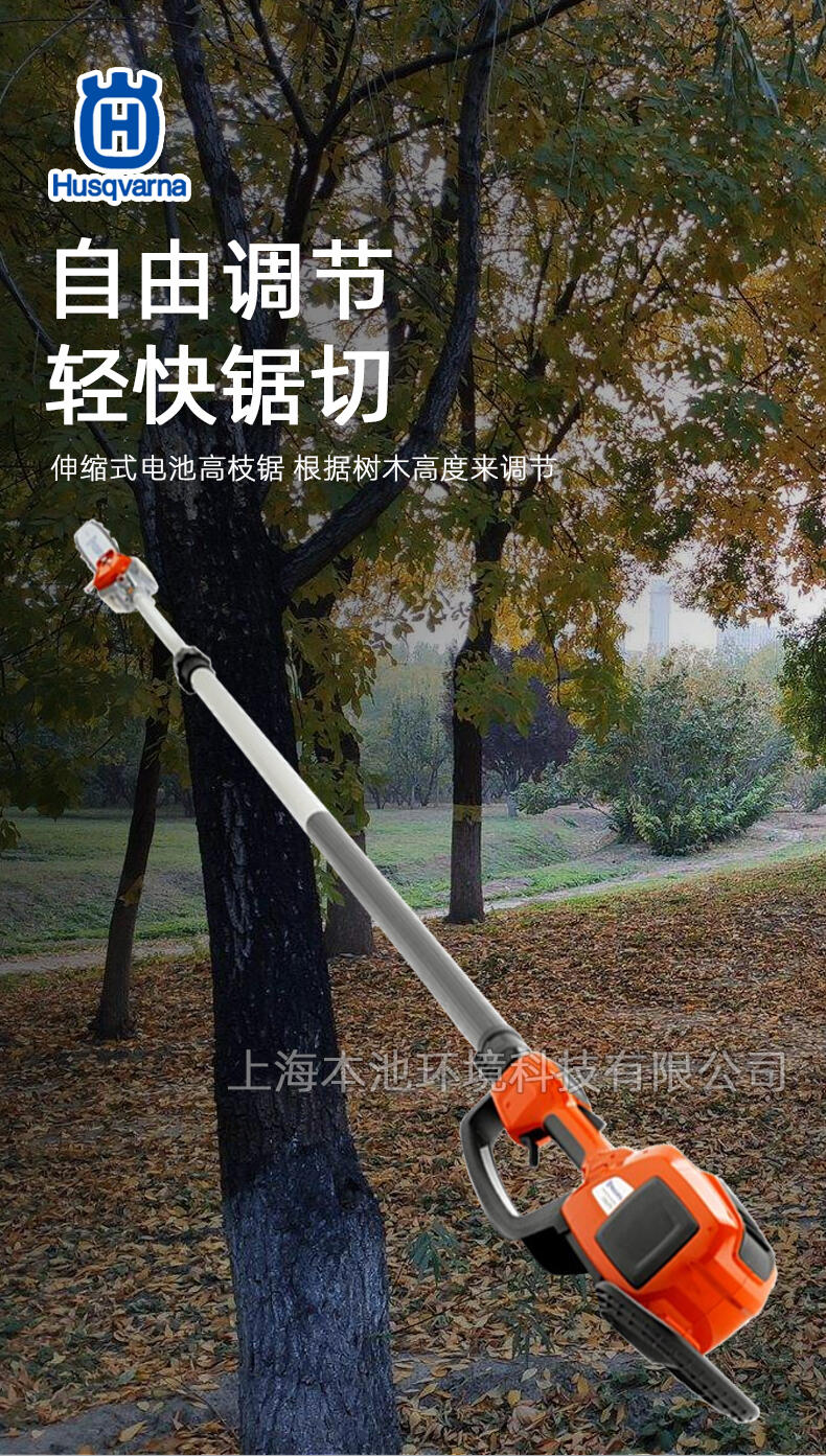 Husqvarna富世华高枝锯530ipT5,手持式电动树木修枝锯。无线束缚,工作更轻松。无刷电机,可伸缩杆,一键启动,轻松便携,轻松修枝。36V大功率电压,双手柄设计,简单操作效率高。