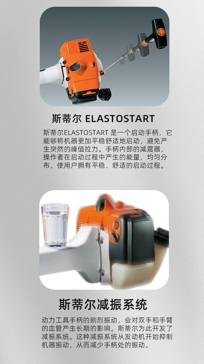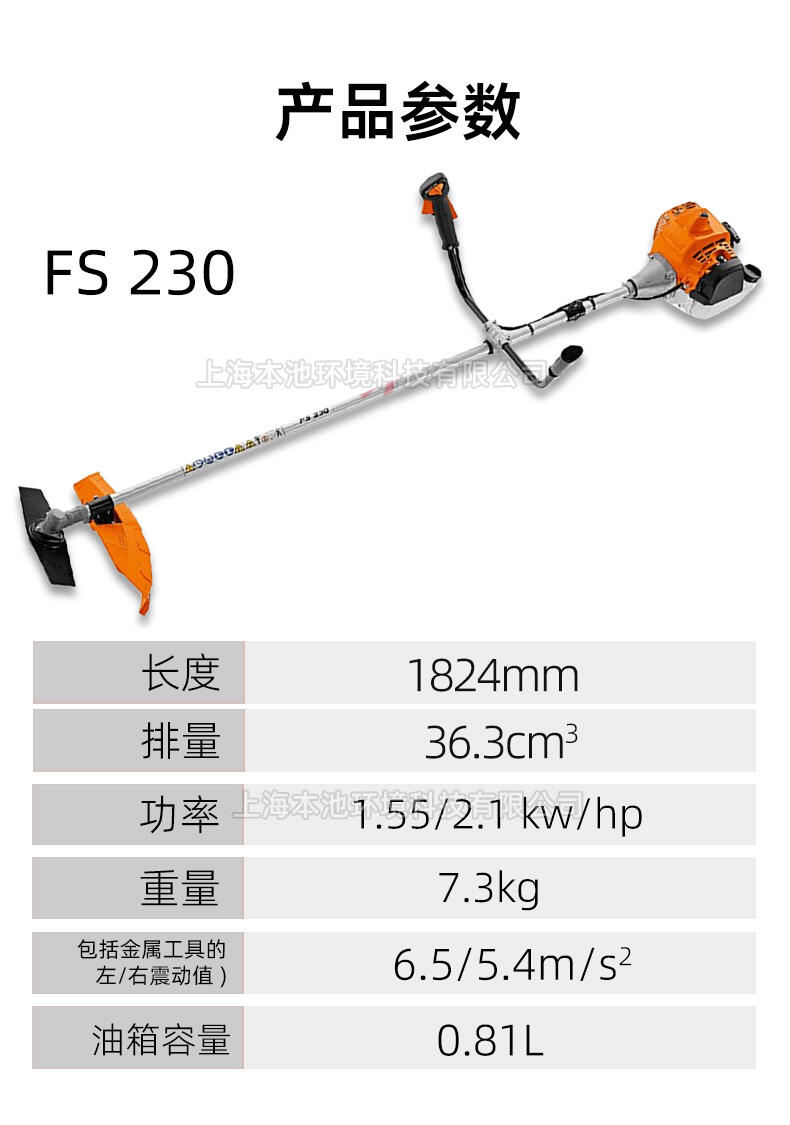 STIHL斯蒂尔割草机FS230手持式割灌机,全长1.824米,牛角把手设计,双肩带设计减轻工作压力。打草头和刀片两中款式可选。油耗低,轻松面对各种场景。开荒型割灌机,适合草原作业,园林养护,大面积修剪和杂草清除。
