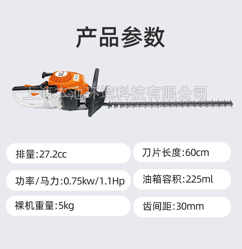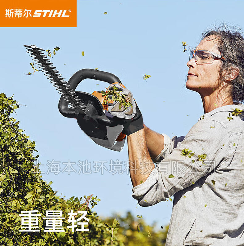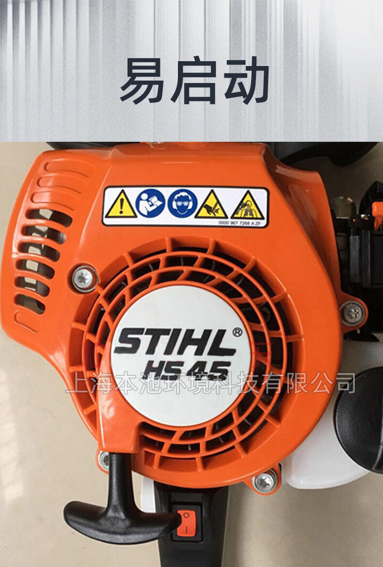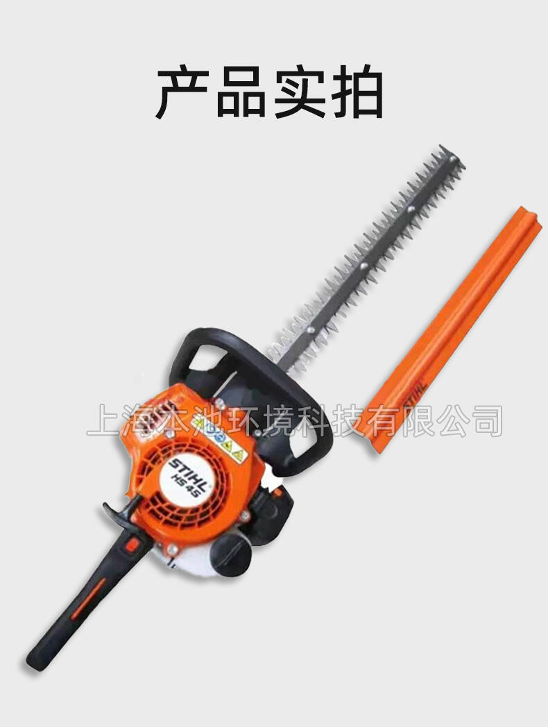 STIHL斯蒂尔HS45绿篱机,双刀刃茶树修枝机。混合二冲程,刀片长度60cm。快速切割,大功率,振动小,易操作,高转速,节能省油,噪音低,轻便,一机多用,适合多种绿化场景修剪,用途广泛,城市景观,市政绿化,小区绿化,公园绿化,茶园修剪,景观造型修剪等,使用方法简单。
