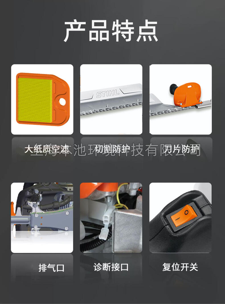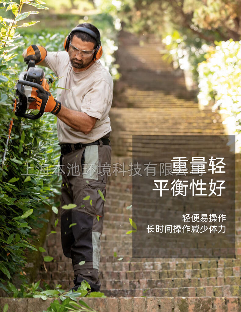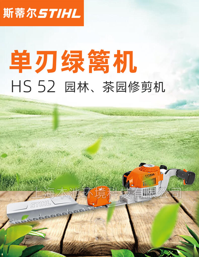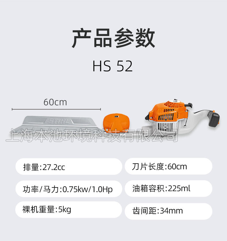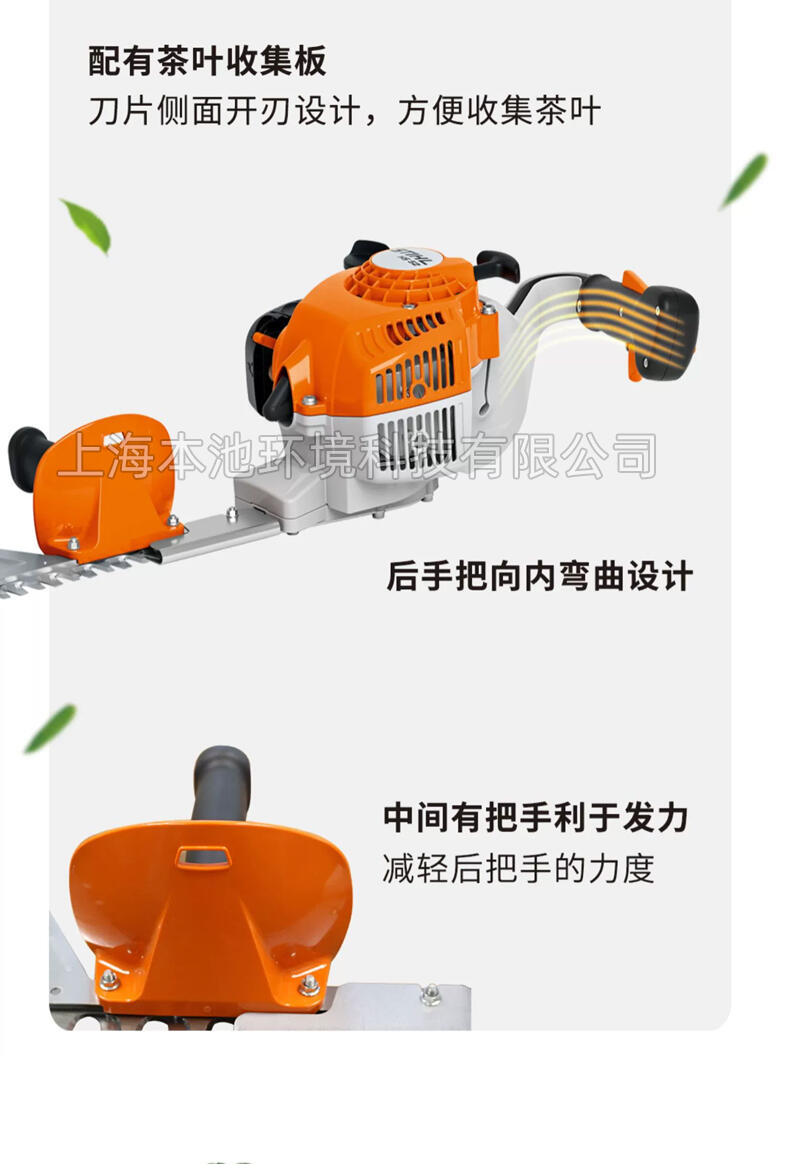 STIHL斯蒂尔HS52单刀绿篱机,手持式园林绿化修枝机,茶园茶树剪枝机。0.75KW大功率,园林修剪好帮手。重量轻,平衡性好,简单易操作。配有茶叶收集板。后手把向内弯曲设计,中间有把手利于发力。常用于花园修剪,茶树修剪,小区绿化,公路清理障碍等多种场合。