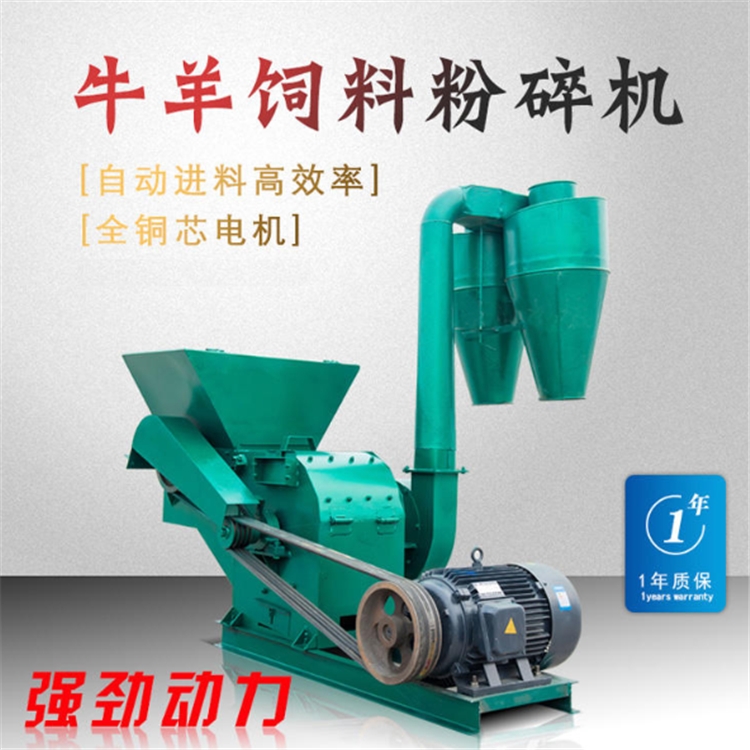自动进料粉碎机由自动破碎仓、雷风刀、粉碎室、转子、风机和集粉器组成,自动扒料喂入,安全可靠,配套动力广泛,具有生产效率高,节省人力,减轻劳动强度,使用方便,耗能低,适应性强等优点。自动进料粉碎机适于粉碎玉米秸秆、玉米芯、棉秆、葵花杆、烟杆、麦秆、豆秸、花生秧、花生壳、地瓜秧、稻草、柠条、各种牧草、直径2CM以下的干树枝等,其突出的优点是在粉碎秸秆、藤蔓类作物时无须预加工和手工喂料,在相同动力相同人力下,该机的工作效率比其他粉碎机提高2-3倍。