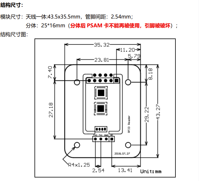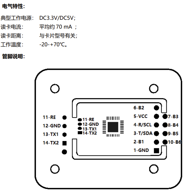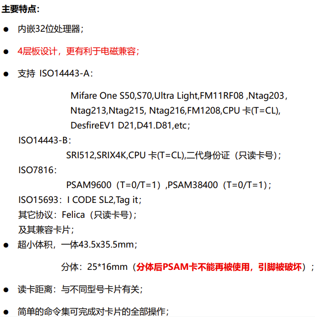 圆志科信全协议14443A/B/15693/Felica/二代证UID读卡模块 型号 | HM104FETV3 | ||