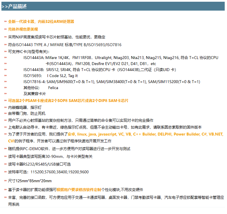 高频13.56MIC卡读卡器读写卡器读写器串口RW210