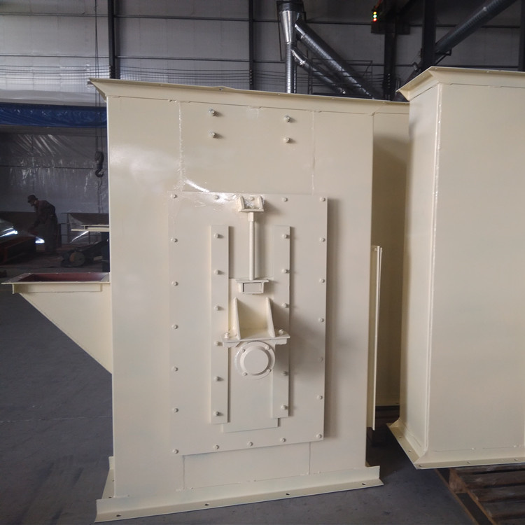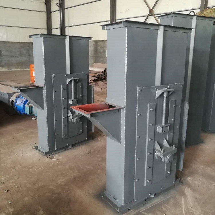 斗式提升机用来垂直提升经过破碎机的石灰石、煤、石膏、熟料、干粘土等块粒状物料以及生料、水泥、煤粉等粉状物料。根据料斗运行速度的快慢不同,斗式提升机可分为:离心式卸料、重力式卸料和混合式卸料等三种形式。离心式卸料的斗速较快,适用于输送粉状、粒状、小块状等磨琢性小的物料;重力式卸料的斗速较慢,适用于输送块状的,比重较大的,磨琢性大的物料,如石灰石、熟料等。