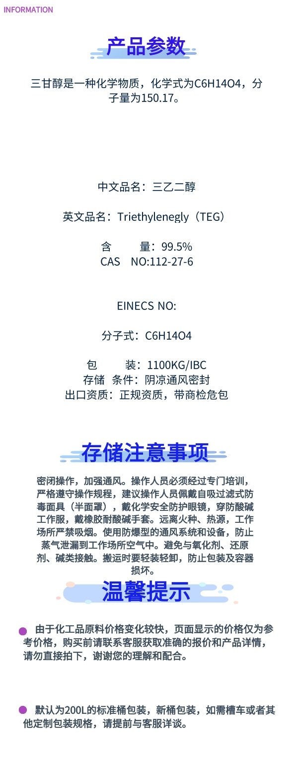 巴斯夫三乙二醇厂家现货供应 桶装高纯99.5三甘醇出口供应 内销出库自带质检单 各大港口均可安排