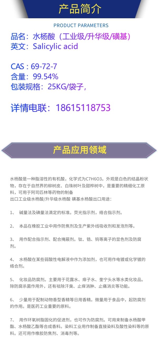 水杨酸现货批发工业级水杨酸升华级水杨酸磺基水杨酸出口