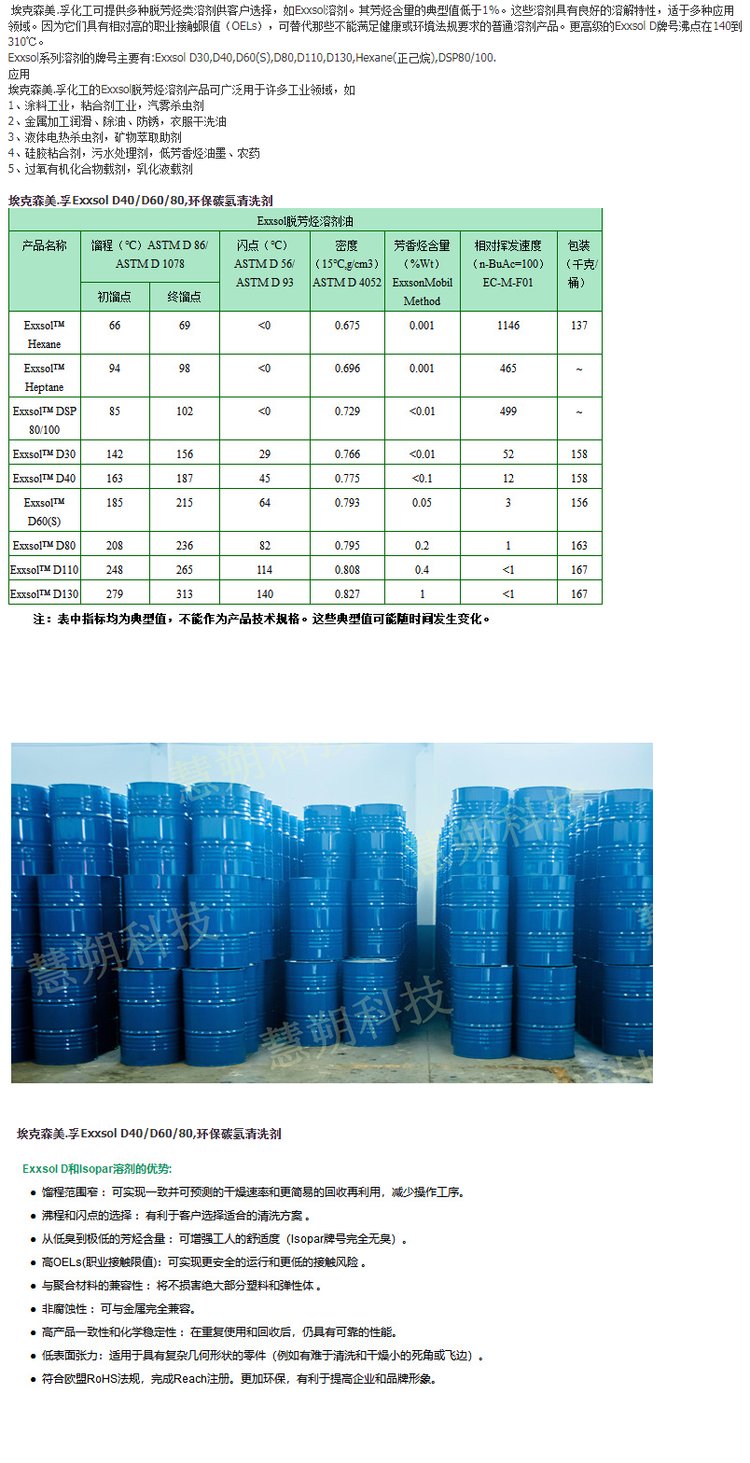 供应埃克森Exxsol D40/D60/D80/D100碳氢清洗剂 用于工业清洗等 品牌 | 埃克森美.孚 | ||