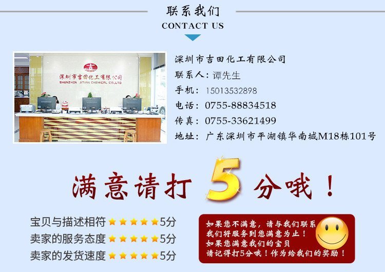 深圳市吉田化工有限公司 智能客服智能客服在线解答,若涉及资金打款事宜,务必与厂家进行电话确认。