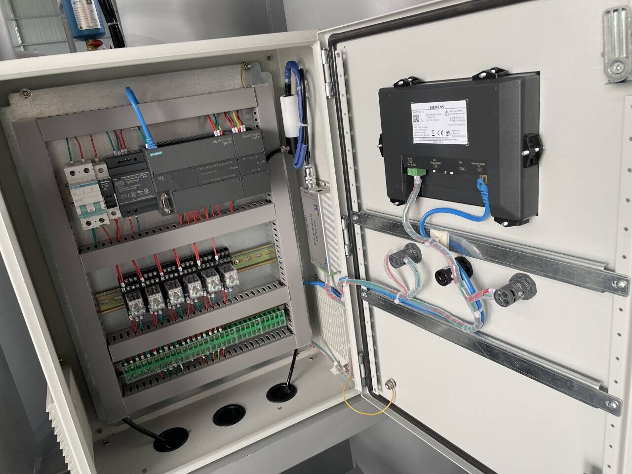 装有碳分子筛的吸附塔共有A、B两只。当洁净的压缩空气进入A塔入口端经碳分子筛向出口端流动时,O2、CO2和H2O被其吸附,产品氮气由吸附塔出口端流出。经一段时间后,A塔内的碳分子筛吸附饱和。这时,A塔自动停止吸附,压缩空气流入B塔进行吸氧产氮,对并A塔分子筛进行再生。分子筛的再生是通过将吸附塔迅速下降至常压脱除已吸附的O2、CO2和H2O来实现的。两塔交替进行吸附和再生,完成氧氮分离,连续输出氮气。上述过程均由可编程序控制器(PLC)来控制。当出气端氮气纯度大小设定值时,PLC程序作用,自动放空阀门打开,将不合格氮气自动放空,确保不合格氮气不流向用气点。气体放空时利用消声使噪声小于75dBA。