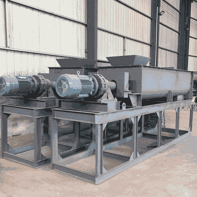 双轴搅拌机从顶部进料,底部出料,结构合理。各结合面之间的密封严密,运行平稳。
