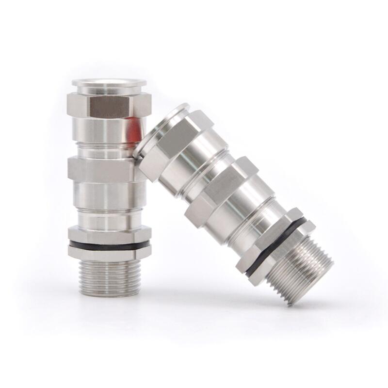 產品說明 :本公司的不锈钢电缆接头采用304不锈钢材质精制而成,具有独特的防爆功能,特殊夹紧爪与夹紧圈之设计,夹紧电缆范围大,抗拉力特强,可防水、防尘、抗盐、耐弱酸、酒精、油、油脂及一般溶剂。防爆作用广泛被使用在防爆电器,中石化,化工等行业,不锈钢电缆接头防爆认证齐全。