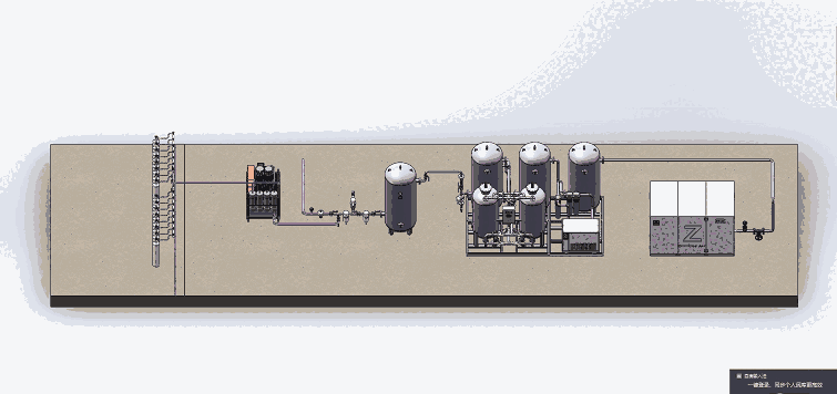 空气储罐的作用是:降低气流脉动,起缓冲作用;从而减小系统压力波动,使压缩空气平稳地通过压缩空气净化组件,以便充分除去油水杂质,减轻后续PSA氧氮分离装置的负荷。同时,在吸附塔进行工作切换时,它也为PSA氧氮分离装置提供短时间内迅速升压所需的大量压缩空气,使吸附塔内压力很快上升到工作压力,保证了设备可靠稳定的运行。