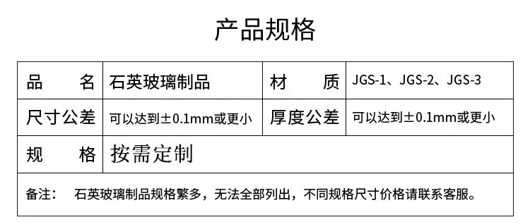 按其光学性能可分为三类:JGS1石英玻璃、JGS2石英玻璃、JGS3石英玻璃。