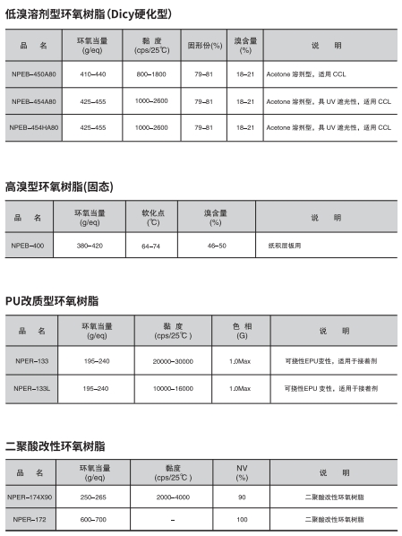 5.电绝缘性优良:环氧树脂的击穿电压可大于35kv/mm6.工艺性能良好、制品尺寸稳定、耐性良好和吸水率低。双酚A型环氧树脂的优点固然好,但也有其缺点:①.操作粘度大,这在施工方面显得有些不方便②.固化物性脆,伸长率小。③.剥离强度低。④.耐机械冲击和热冲击差。