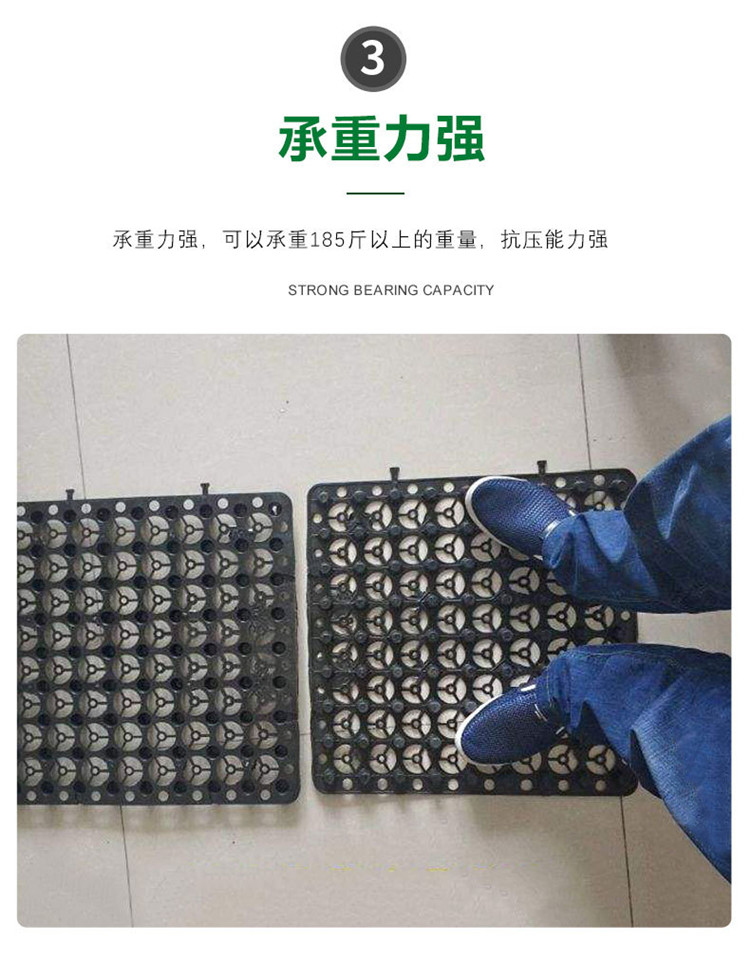 成块:500*500mm4块为一平米(蓄排水板具有储水功能)