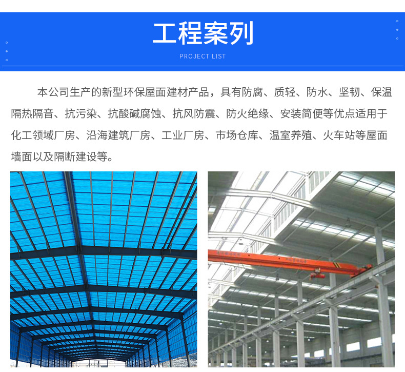 钢结构厂房屋面采光板定制供蓝色透明玻璃钢采光瓦阳光板