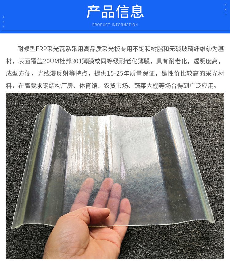 FRP采光瓦840型耐候型钢结构采光板化工厂玻璃钢瓦