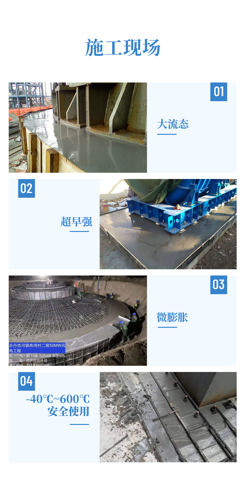 特点 | 高强度无收缩微膨胀自密实 | ||