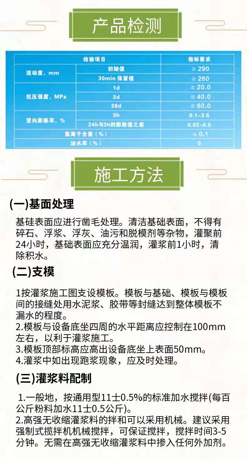 特点 | 无收缩微膨胀自密实 | ||