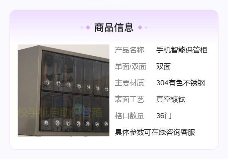 用途范围 | 手机自助收纳 手机集中保管 | ||