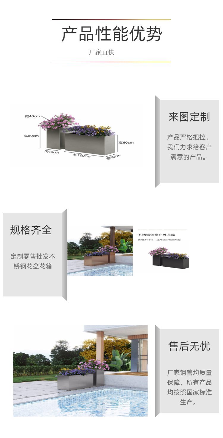 户外组合花钵 不锈钢花盆 酒店展厅方形花瓶 绿化金属花箱厂家定制
