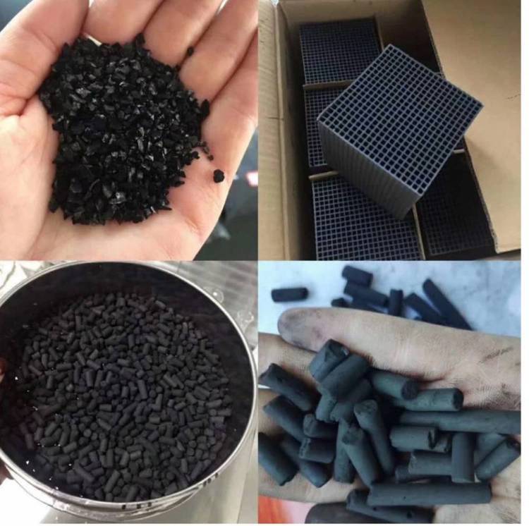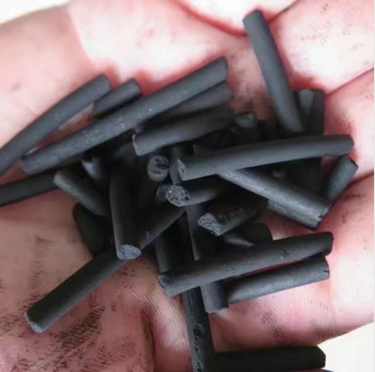 煤质黑色圆柱状活性炭,不定形煤质颗粒活性炭,又称破碎炭。圆柱形活性炭又称柱状活性炭炭,一般由粉状原料和粘结剂经混捏、挤压成型再经炭化、活化等工序制成。也可以用粉状活性炭加粘结剂挤压成型。具有发达的孔隙结构,良好的吸附性能,机械强度高,易反复再生,造价低等特点;用于有毒气体的净化,废气处理,工业和生活用水的净化处理,溶剂回收等方面。