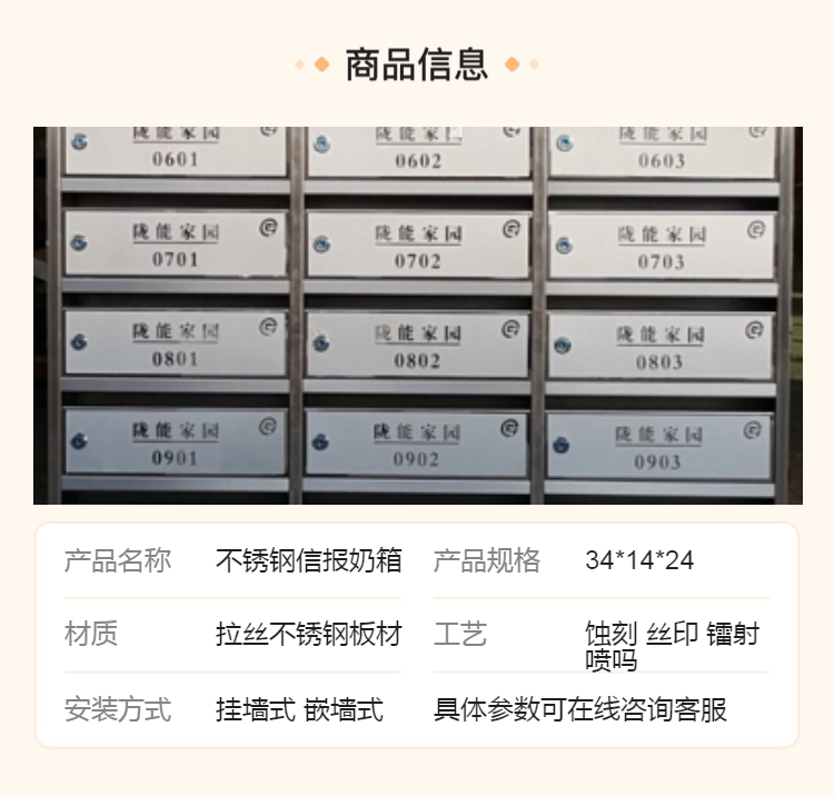爱伦堡品牌不锈钢信报箱居民牛奶配送箱邮政包裹挂式报信杂志