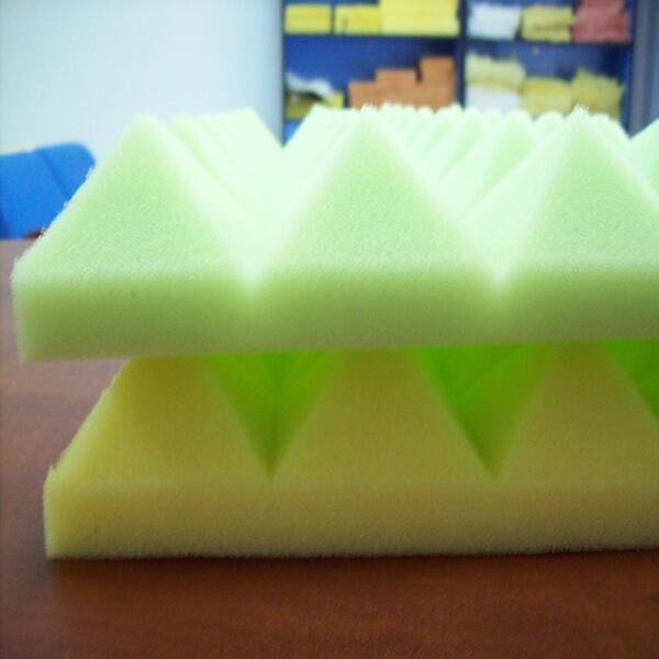 3、金字塔吸音海绵吸收频率可达到500HZ以上,这样保证了在室内声学处理中,有一个平坦