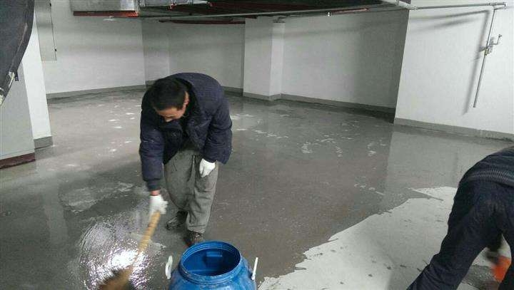 2、在清理干净的混凝土表面上,喷洒或滚涂混凝土表面增强剂,(一般一遍即可,二遍视一遍效果而定,时间在一遍施工后2-12小时之间佳),维持饱和湿润状态 10-20分钟,以利更多有效成份进入混凝土内部。