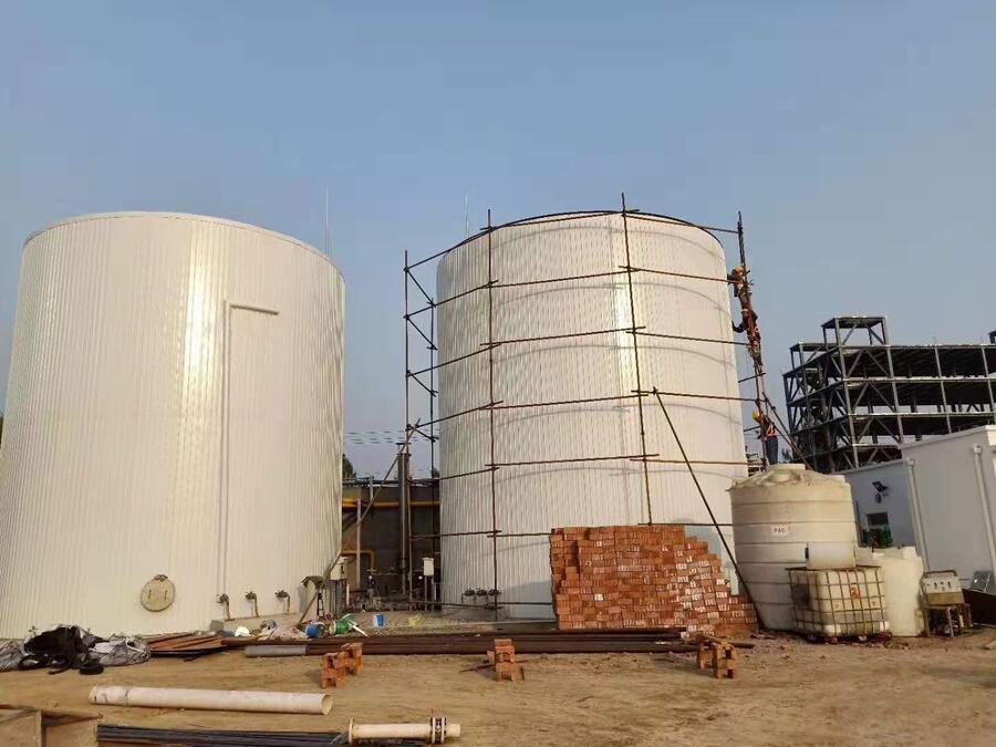 1. 储罐罐体用高温胶水粘贴防水硅酸盐保温板,保温泥抹缝密封,粘贴包裹玻纤布,涂刷防水涂料, 安装薄铝板;