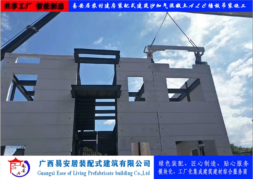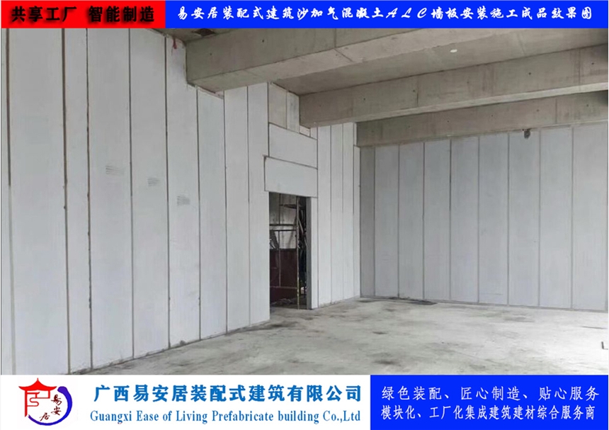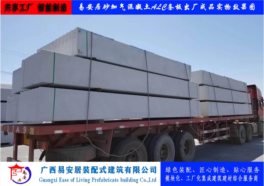广西易安居装配建筑有限公司生产制造的ALC墙板实现了生产工业化、标准化,安装产业化,具有完善的应用配套体系,配有专用连接件、勾缝剂、修补粉、界面剂等;产品容重轻、强度高、速度快,施工干作,可锯、切、刨、钻。其隔音性、耐火性、抗冻性、抗渗性均有较好的性能效果。其主要参数指标及特点如下: