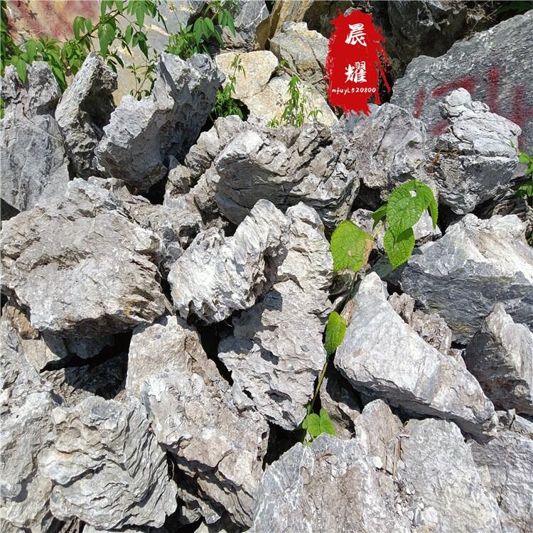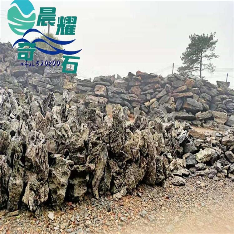 英石峰石,呈山峰状,尺寸一般在30~100公分长,重约30~120斤不等,形状呈不规则条形状,以多凹凸有致的花纹和石峰。