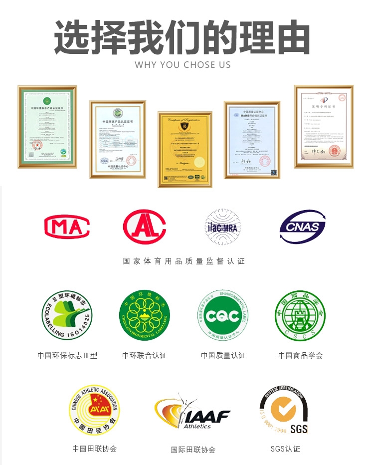 全塑型塑胶跑道的特点是非渗水性、面层具有良好的物理弹性及高度的抗耐磨性,能抵御各类较坏气候状况,长时间的日照,雨季及冰冻气候。因为它不含有任何黑颗粒,是由纯PU材料施工铺装而成,材料在280-300℃的高温加硫硬化一体成型。结合运动科学和材质科学,能充分满足和体现运动员参与者对跑道的专业要求。