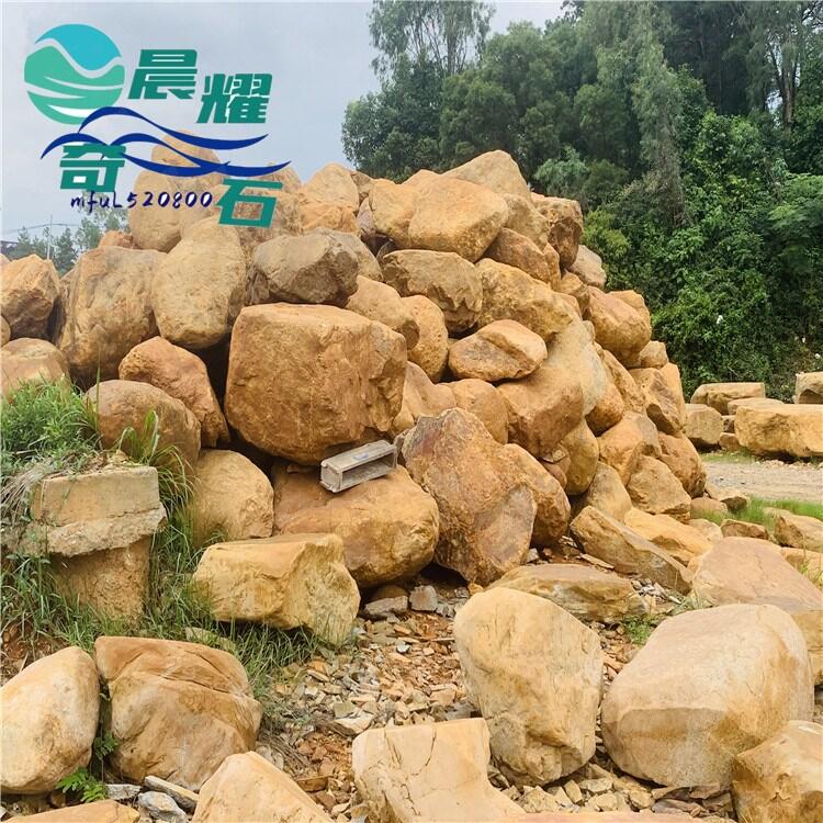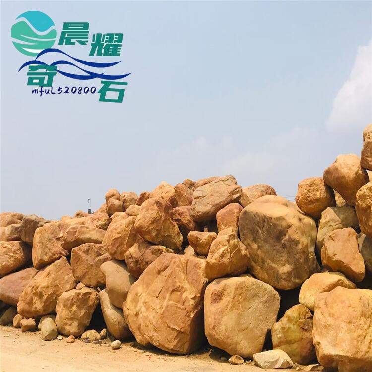 景观黄腊石石质优,形状佳美,而且价格实惠,应用于公司、工厂、厂房、学校、旅游景区、工业园、科技园、古建筑、房地产、酒店、别墅、家居、市政道路作为招牌刻字石、园林景观点缀石。