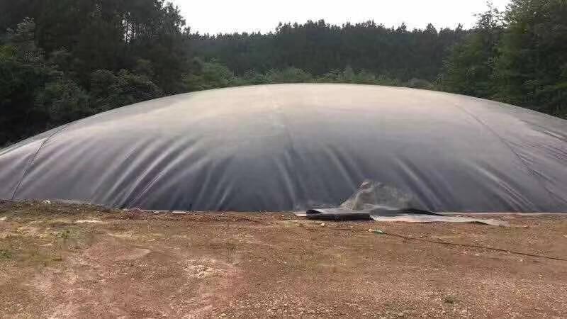 养猪场黑膜沼气池,学名“全封闭厌氧塘”,是现在很多养殖场沼气制取装置中的一个重要部分,厌氧塘建设因养殖场的具体情况而定,开挖建池,采用HDPE防渗膜铺设厌氧塘底部,按顺序铺设底膜,每卷焊接处要留有十五公分进行焊接,顶膜同样采用HDPE黑膜覆盖整个厌氧塘,将厌氧塘全部封闭,沼气中的有机物在厌氧的条件下,可以有效的降解污水中的COD与BOD的浓度,经过微生物的发醇降解污水中的有机物,并产生沼气。