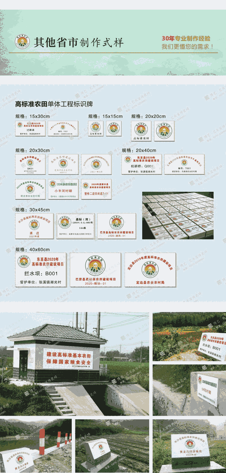 高标准农田建设项目标识牌 高温烧制 可定制尺寸
