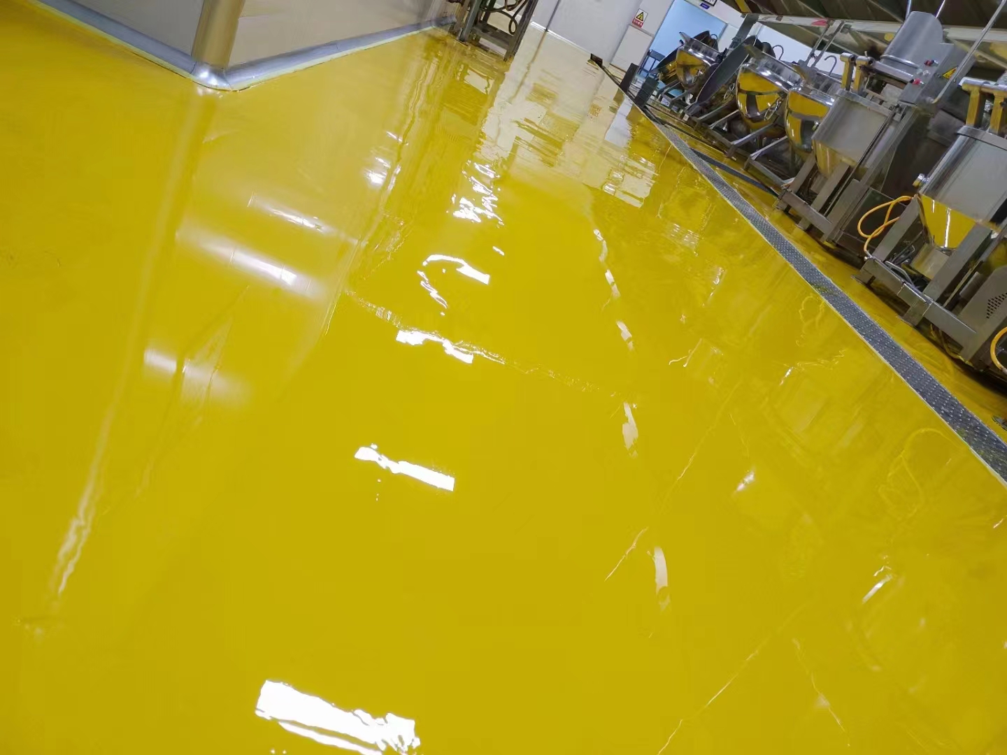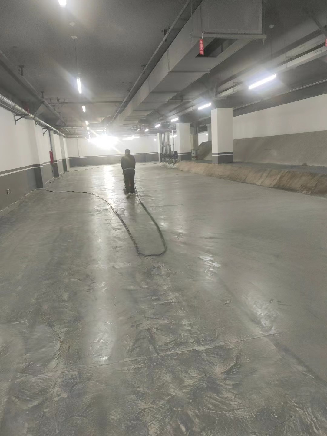 1.在处理好的地坪面上,辊涂渗透底涂料。使用高性能低粘度的树脂作为底涂料,该底涂料有一定渗透性。