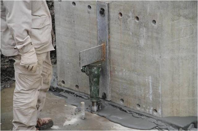 在灌浆过程中不宜振捣,必要时可用竹板条等进行拉动导流。每次灌浆层厚度不宜超过100mm。较长设备或轨道基础的灌浆,应采用分段施工。每段长度以10m为宜。当设备基础灌浆量较大时,应采用机械搅拌方式,以灌浆施工。