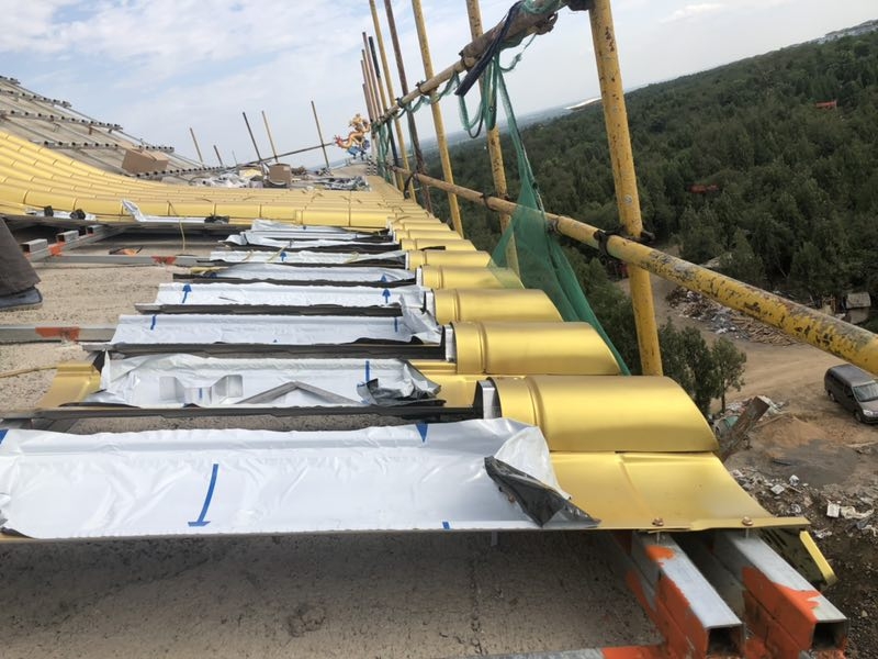 长沙金属瓦|东申瓦业|长沙金属瓦厂家集金属瓦色泽好,使用50年以上不长草漏雨,老化,防腐蚀,可定制,尺寸规格齐全,各种跨度和形状仿古屋面都可施工;东申瓦业承接仿古建筑改造,仿古街道改造,清真寺改造,寺庙大殿改造,景区提升改造,亭子,公共建筑改造等多种仿古屋面皆可施工;覆盖全国范围,东申厂家直供;