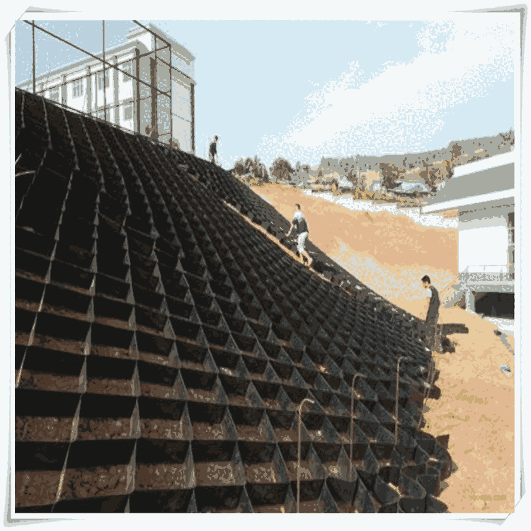 灵石县蜂窝土工格室运用土工格室进行边坡防护具有前进水土抗腐蚀性与生态环境维护两层含义。