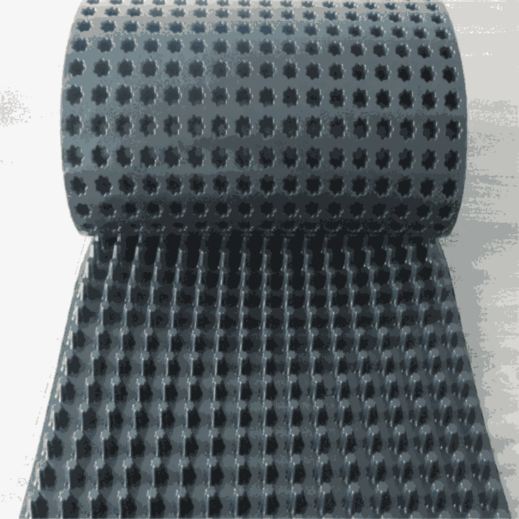 培养屋面排水板施工工艺流程 : 施工准备→排水沟施工→保温隔热层→找平(坡)层→一道防水层→二 道防水层→防水保护层→细节结构修补→耐根层→蓄排水板施工→无 纺布施工→培养土施工→植被层 。 防穿刺排水板是由高密度聚乙烯或许是聚丙烯为资料塑胶底板经过冲 限制成圆锥突台或许加筋的凸点(或中空圆柱形多孔)而成,经过不 断的立异研制资料得到巨大进步和变更,抗压强度和整体平坦度得到 大幅度的进步,幅宽1-3米,长度有4-10米或许以上。