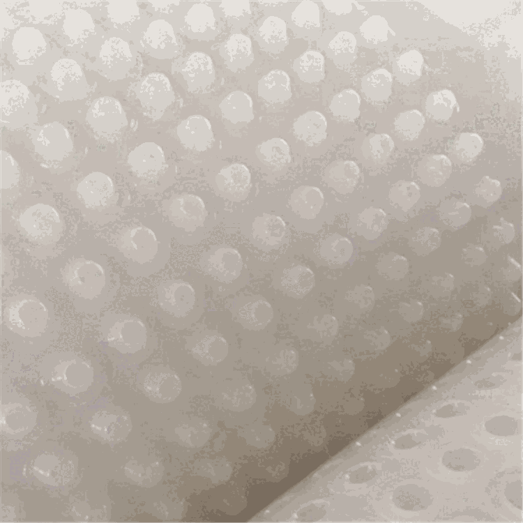 圆锥凸台的顶面胶接过一层过滤土工布,以阻挠泥土微粒经过,然后 避免排水板通道堵塞使孔道排水晓畅。传统的排水方法运用砖石瓦块 作为导滤层,运用较多的鹅卵石或碎石层作为滤水层,将水排到约定 地址。而用排水板替代鹅卵石滤水层来排水则省时、省力又节能、节 省出资、还能下降修建物的荷载。 车库底板排水板在现如今社会用的比较广泛,现在城市楼房大厦比较 多,所以排水天然就成了问题的重中之重了。车库底板排水板替代传 统做法中15cm-20cm厚的陶砾/卵石排水层,然后削减顶板荷载、下降 工程造价,介于修建空间。