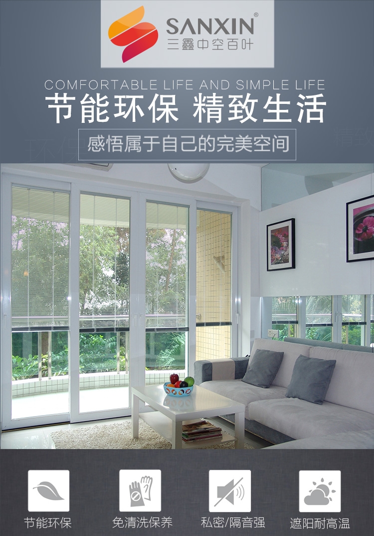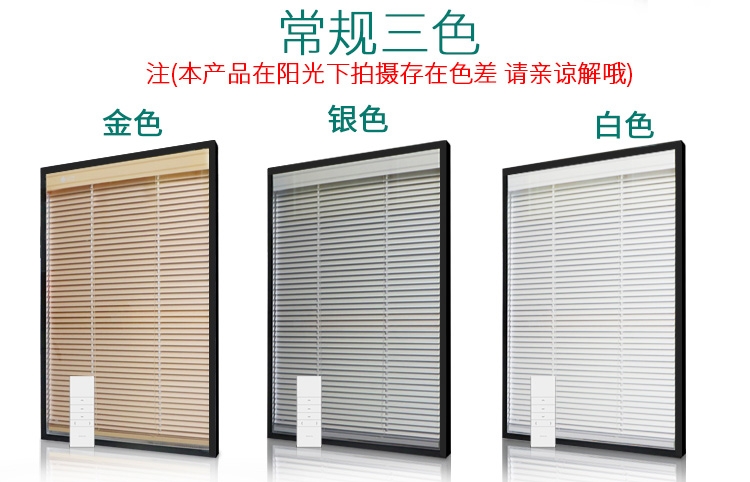 电动中空百叶帘遮光防晒隔音隔断玻璃铝合金内置百叶帘